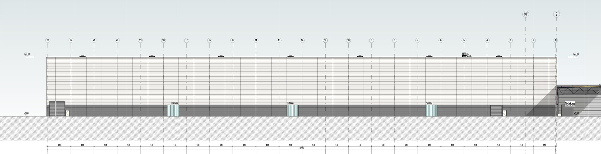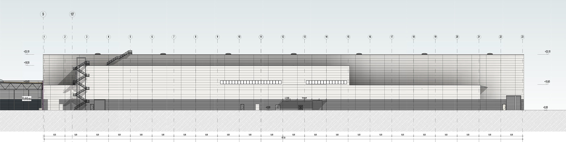 A Mercedes Kecskeméti gyár bővítésének 2. ütemében a 20.000 m2-es Presswerk monolit vasbeton és előregyártott vasbeton oszlopok szerkezetének tervezése volt a feladatunk. A tervezés Revit BIM modellben történt.