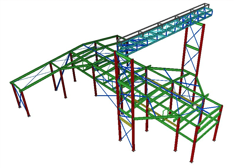 Projekt specifikum: A szerkezetről rendelkezésre álltak kiviteli tervek, melyek amerikai profilokat tartalmaztak. A tervezés során európai szelvényekre tértünk át.