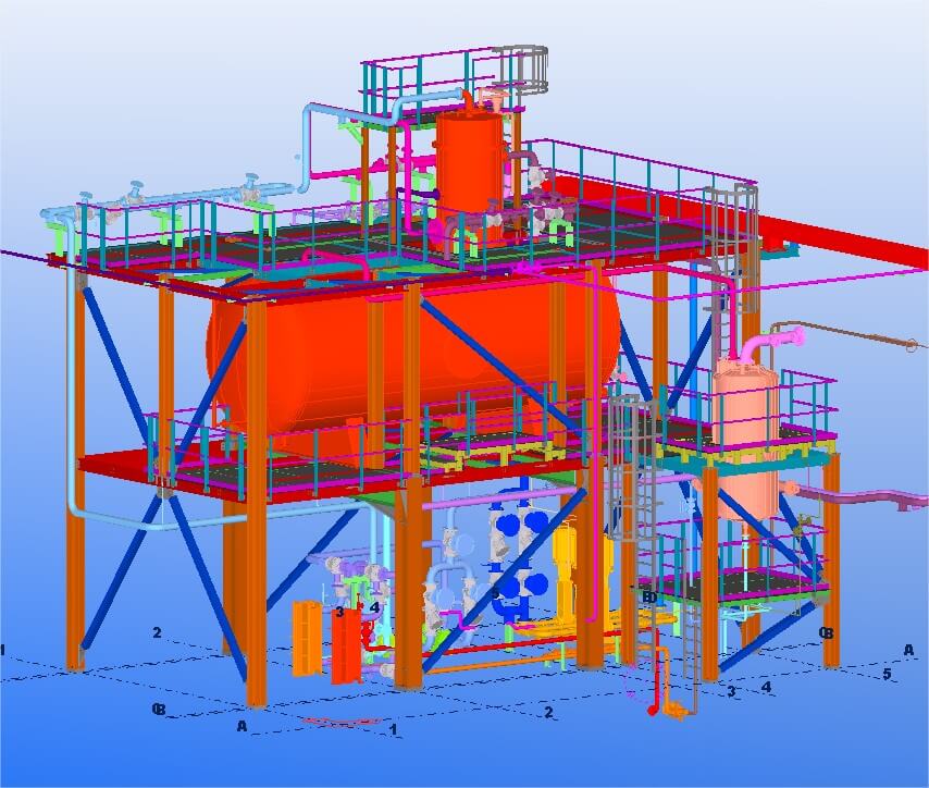 Projekt tárgya: A Montivo Magyarország Kft. megbízásából terveztük meg egy gáztalanító táptartály ipari acélszerkezetét.