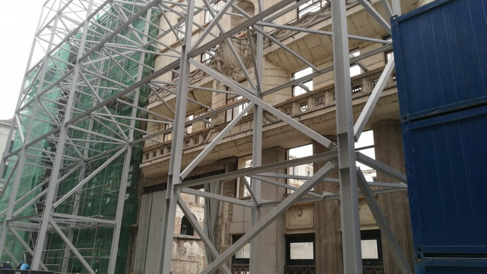 Projekt tárgya: Műemlék épület felújítása. Homlokzat megtámasztás tartószerkezeti kialakítása. Kiviteli és gyártmánytervek elkészítése.